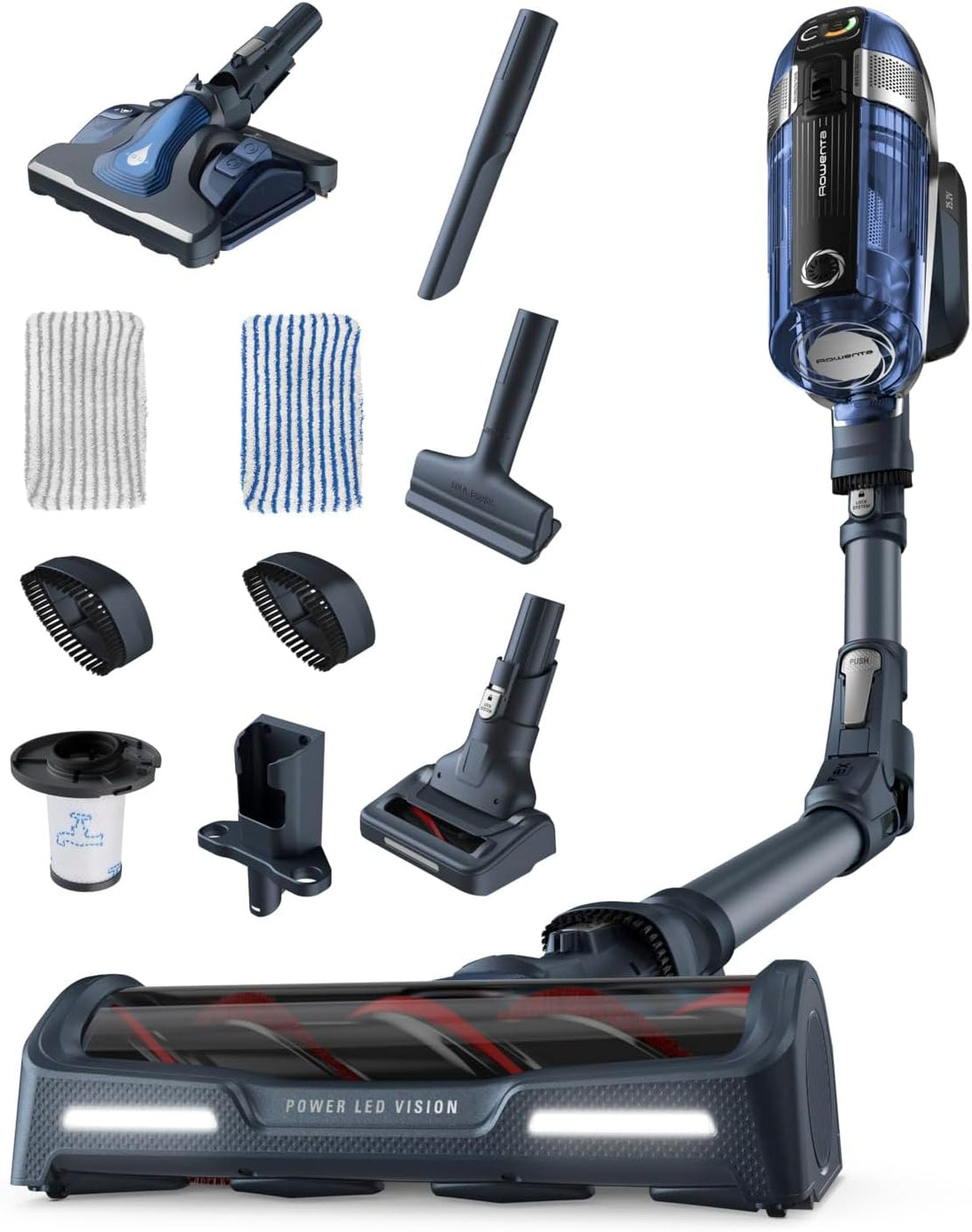 Originalbeschreibung: Rowenta Akku-Hand-und Stielstaubsauger kabellos X-Force Flex 11.60, 300 Watt, beutellos, mit Aqua Mop Bodendüse, 45 Min. Laufzeit, LED-Düse, Display mit Kontrollanzeige, Gewicht 2,5 bis 3 kg, RH9898